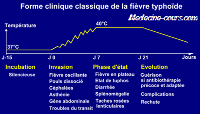 Pouls dissocié, taches rosées lenticulaires, angine de Duguet